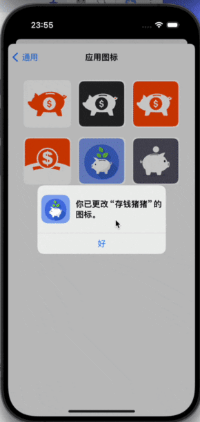 但是在更换图标的过程中,会存在一个待用户确认的提示框,这个提示框由UIApplication.shared.setAlternateIconName方法调用并弹出。