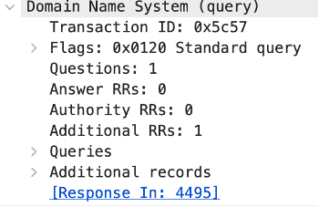 3)Questions / Answer RRs / Authority RRs / Additional RRs:DNS 报文各部分计数;