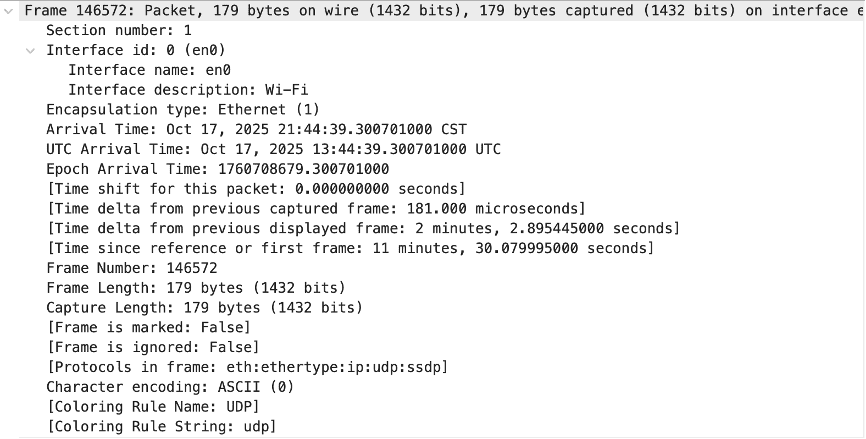 16、Frame is ignored:该帧是否被Wireshark忽略,忽略的包会从分析逻辑中排除,可以右键包 → “Ignore/Unignore Selected” 来切换此状态。