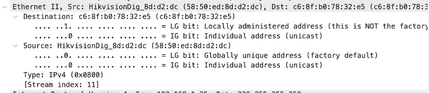 2、Source: 该帧的发送方 MAC 地址。表示哪个网卡发出的包,用于判断哪台主机在发送数据,以及ARP欺骗或伪造MAC地址的行为。