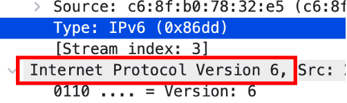 表示该帧的负载是一个 IPv6 数据包,Wireshark 就会在下一层显示 “Internet Protocol Version 6”。