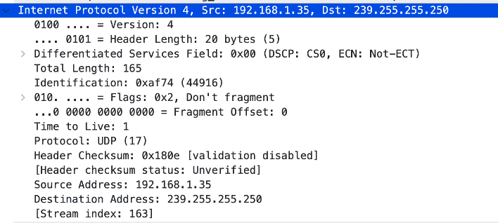 如果Identification值为0x0000(0),可能是包没有分片,系统设置为0,当作默认标识符。大部分小包(比如DNS、HTTP请求)都不会分片。