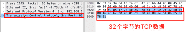 TCP报文中32个字节属于“头部”,后面才是数据。