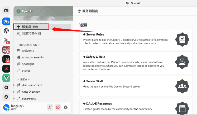 Discord需要进入OpenAI的官方Discord(https://discord.com/invite/openai)