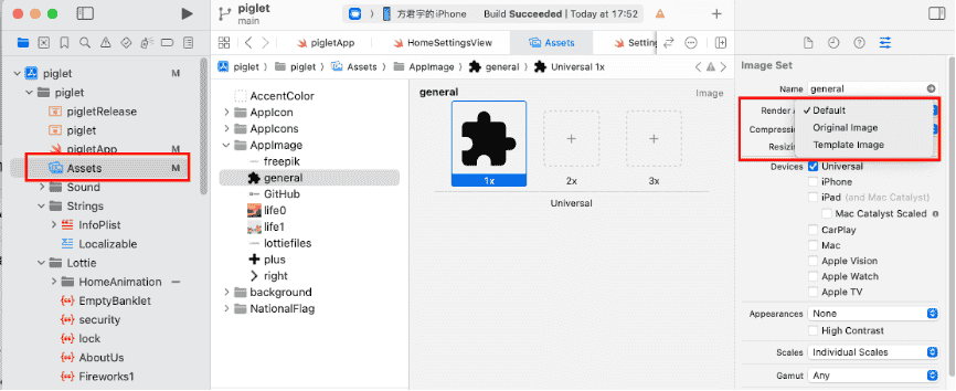 在Xcode的Asset Catalog中,还可以设置图片资源的默认渲染模式: