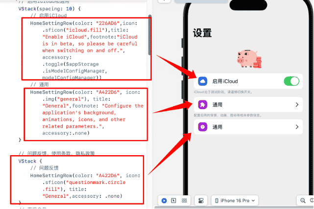 在SwiftUI中,通常需要构建可配置的通用组件,例如按钮组件、Toggle组件等。