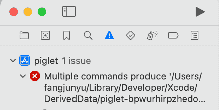 Multiple commands produce '/Users/fangjunyu/Library/Developer/Xcode/DerivedData/piglet-bpwurhirpzhedoekfnulldhckdxj/Build/Intermediates.noindex/piglet.build/Debug-iphoneos/piglet.build/Objects-normal/arm64/AppStorageManager.stringsdata'