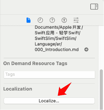 在Xcode中打开文件,点击右侧边栏,找到“Localization”-“Localize…”。