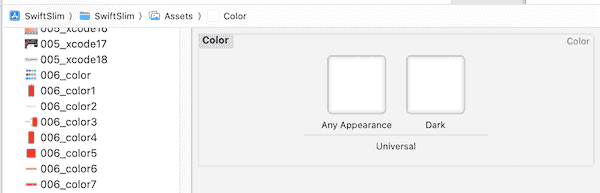 在 Xcode 的 Assets.xcassets 中创建一个 Color Set,然后设置 Light Appearance 和 Dark Appearance。