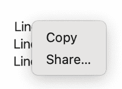在 iOS 上,长按文本后滑动手指即可选中,松开后显示 Copy 菜单。在 macOS 上,点击并拖拽即可选中文本,松开后显示 Copy 菜单。