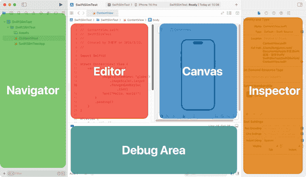 在后面的课程中,我们主要在 Editor 区域编写 Swift 和 SwiftUI 代码。