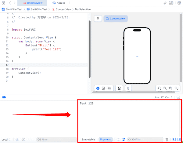 注意:print 是 Swift 代码,不是界面控件。它不能直接放在 body 中,否则会报错。