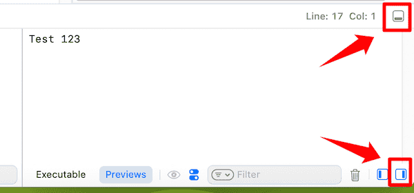 这两个标签对应不同的运行环境:当在 Canvas 预览视图时,print 的输出会显示在 Previews 标签下;如果在模拟器或真机运行应用,则输出会显示在 Executable 标签下。
