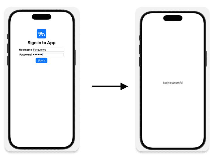 一旦 `login` 的值发生变化,`ContentView` 中的 `if` 判断结果也会跟着改变,界面就会从原来的登录视图,切换成 `Login successful`。