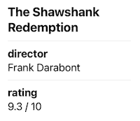 let movieRating = ["9.3 / 10", "8.8 / 10", "8.4 / 10", "8.0 / 10", "8.1 / 10"]